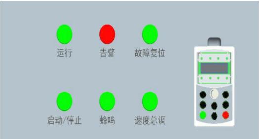 控制面板有啟動(dòng)/停止旋鈕,速度調(diào)節(jié)旋鈕,變頻器顯示和設(shè)置小面板,還包括運(yùn)行、蜂鳴、告警指示燈,*作簡(jiǎn)單。
